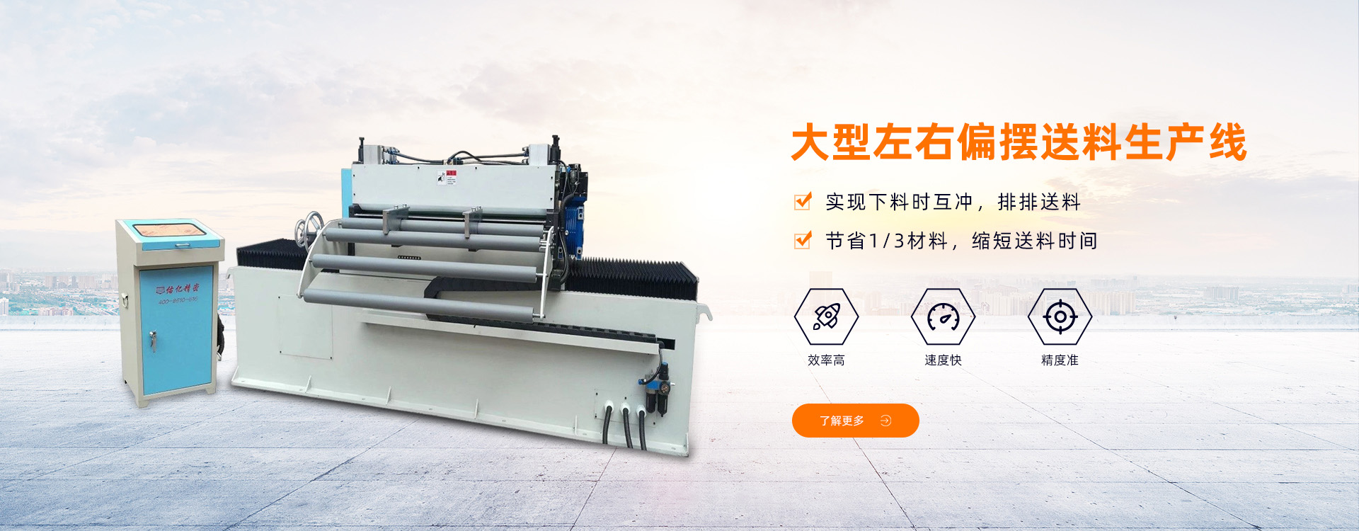 三合一送料機是集送料、矯正、料架三機一體全自動送料裝置,高技術,高精密,高效率,在沖床周邊設備系列產品上可說是矯正送料機的頂點表現,其功能及優點特多,省空間,耐用,操作簡單,對特長、特寬、較厚材料等效果特別好,在工業界一致被認為先進之自動送...
